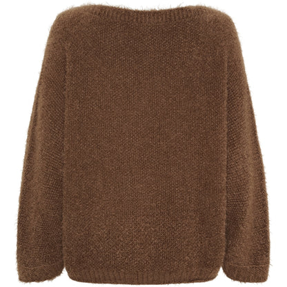 Lækker og blød strikbluse fra Marta du Château i en flot, mørkebrun farve. Den bløde chenille giver blusen et lækkert og vamset look. Style til lyse bukser eller til mørkeblå jeans og fremhæv den flotte, mørkebrune farve på blusen.Mål: