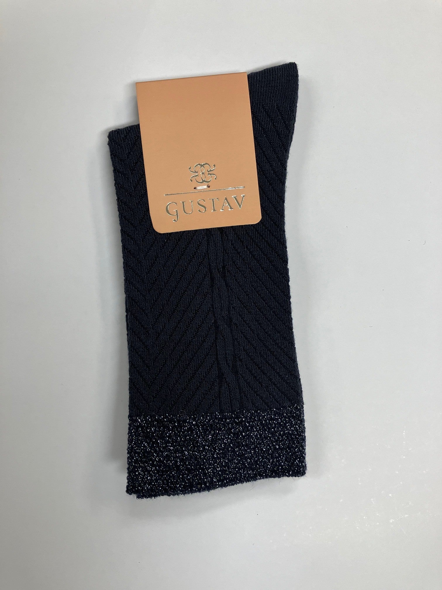 Skønne, blå ankelstrømper fra Gustav med lurex kant øverst. De fine strømper er lækre at have på og er lige lidt mere festlige end helt almindelige ankelstrømper.