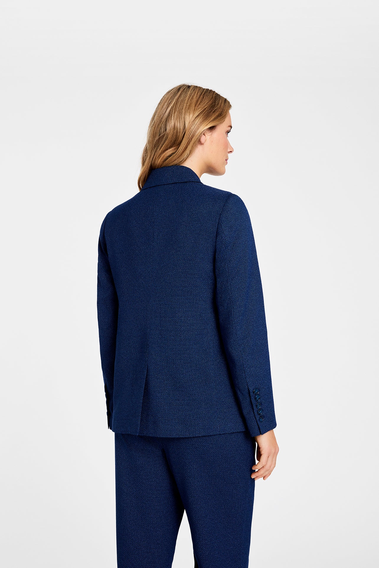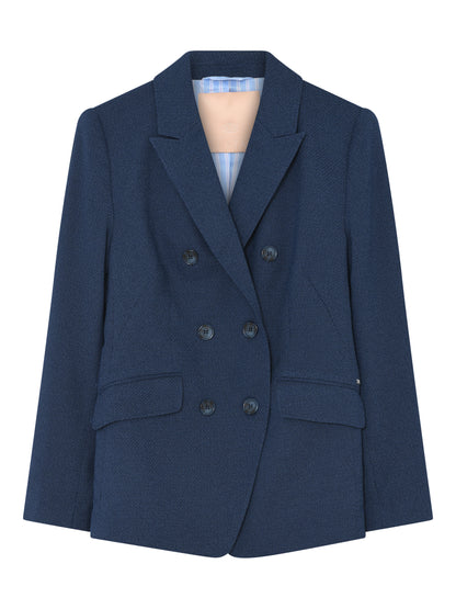 Lækker, dobbeltradet blazer fra Gustav i en flot, mørkeblå farve. Blazeren er let nistret, så den bliver lidt mere cool i sit design. Blazeren har et flot design og er super fin at style til de matchende Bali bukser, som du ser på modelbilledet.