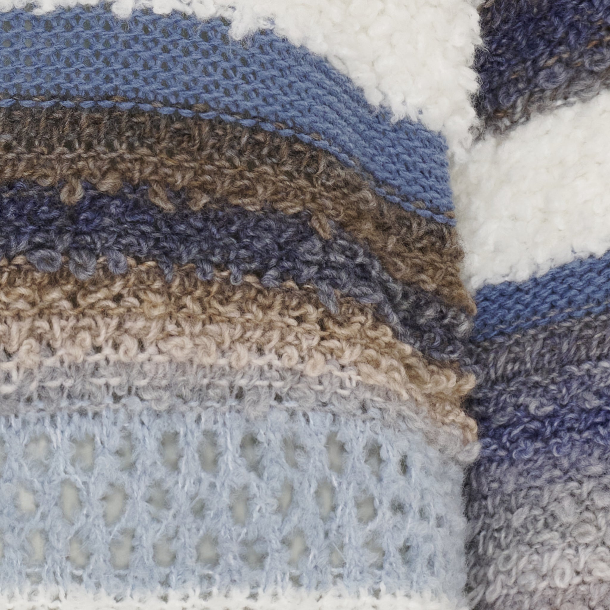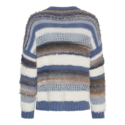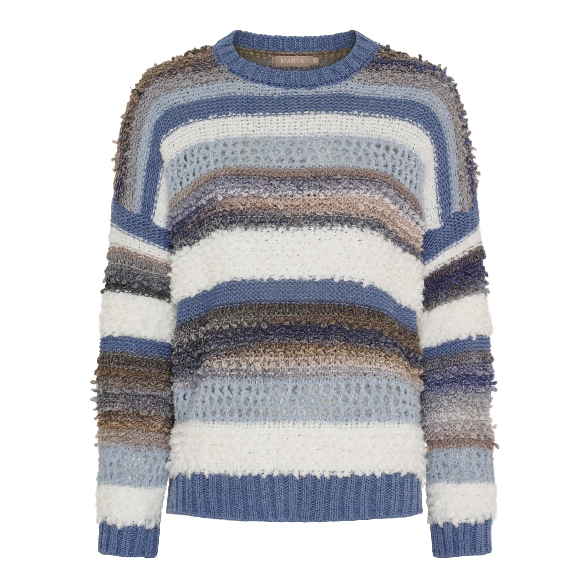 Strikbluse i forskellige blå farver fra Marta. De forskellige brug af materialer giver strikblusen en flot struktur.