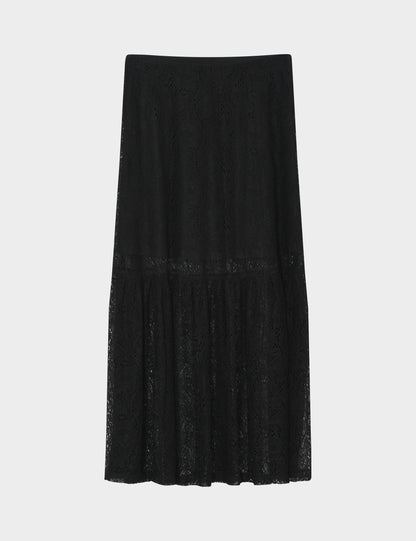 Smuk og elegant blondenederdel fra 2NDDAY med inderkjole i den øverste del, mens den nederste del er uden foring, så blonden fremstår mere tydeligt.