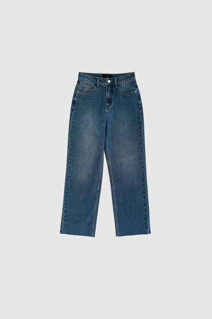 Højtaljede denim jeans med rå kant fra WithBlack.