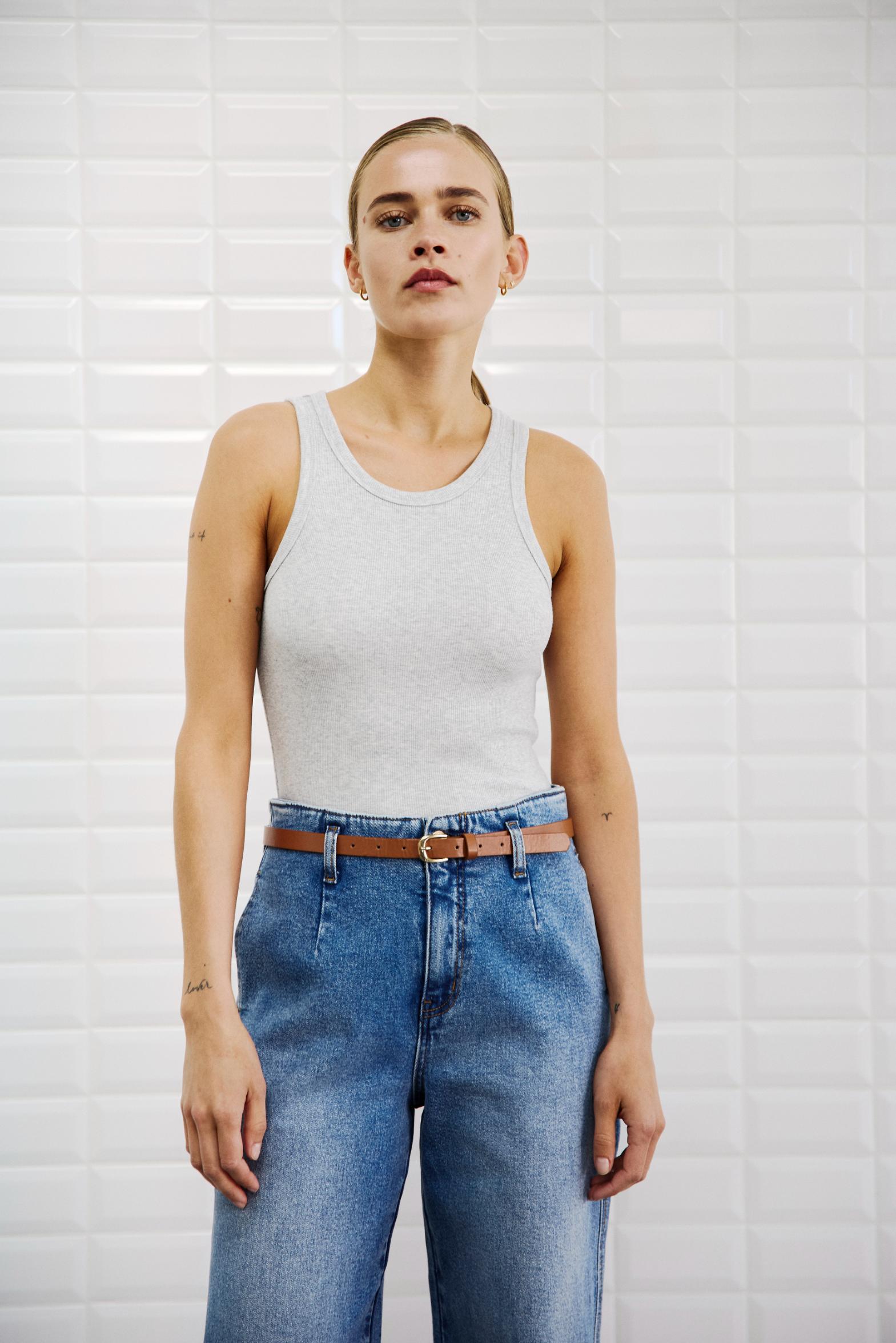 Lysegrå tanktop i rib materiale fra WithBlack.