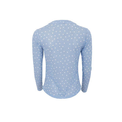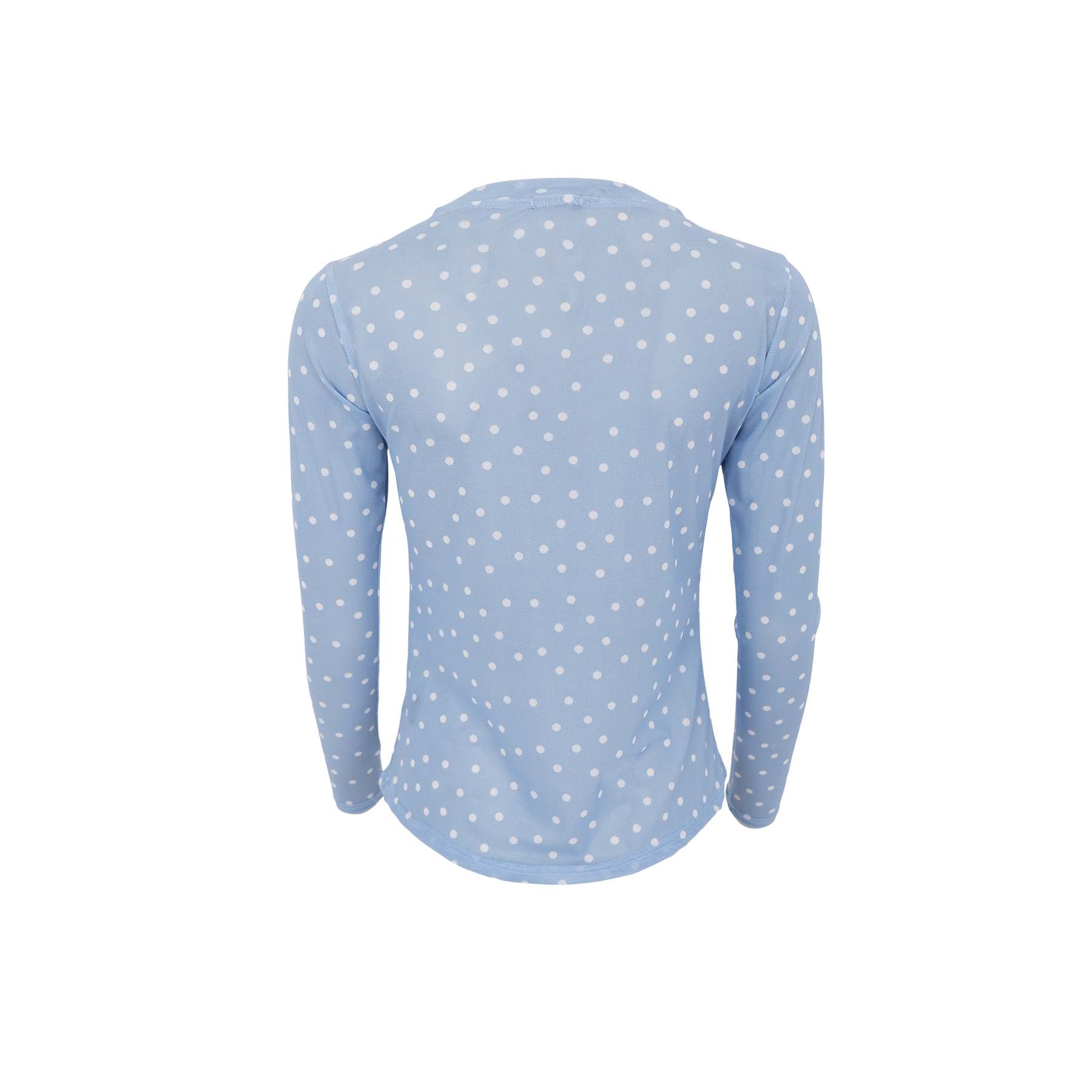 Sød mesh bluse fra Black Colour i en flot, lyseblå farve med hvide prikker. Den blå mesh bluse er super fin at style med camel farvede bukser.