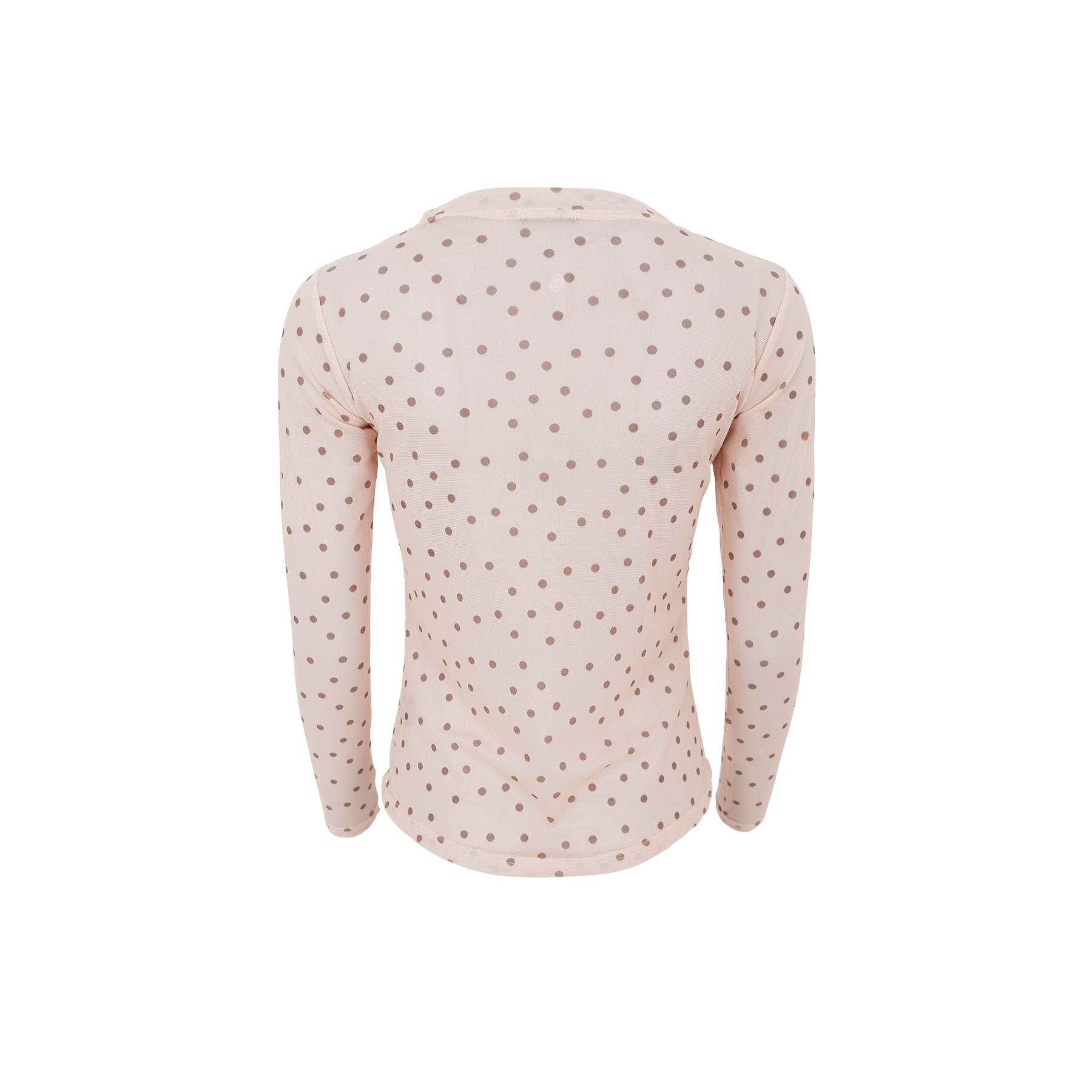 Super fin bluse fra Black Colour i pudderfarvet mesh med sorte prikker. Blusen sidder pænt til og har en enkel, rund halsudskæring. Style med en strik kappe eller blazer over. Du finder meshblusen i flere lækre farver.Mål:½ Chest: 42 cm.Length: 64 cm.