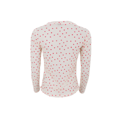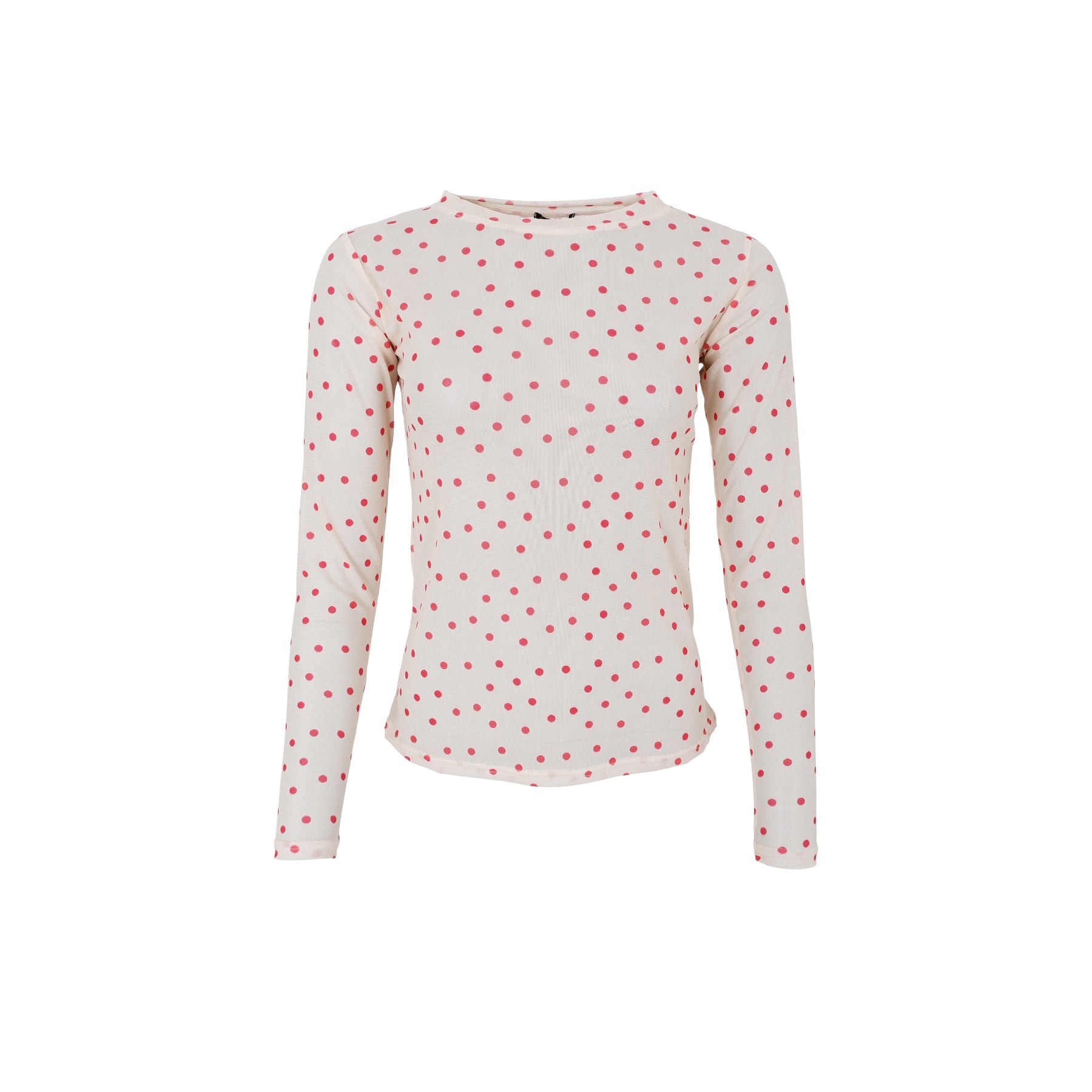 Lys meshbluse fra Black Colour med røde prikker. Blusen er spot on i modebilledet lige nu og er flot at style til jeans eller sorte bukser.