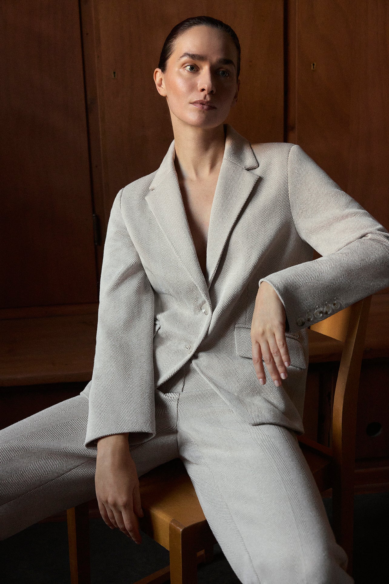 Flot, lys blazer fra Gustav. Blazeren er enkeltradet og lukkes med to knapper. Du kan også lade den stå åben. Style med en strik under på de kolde dage. Blazeren er super flot sammen med de fine Marit bukser.