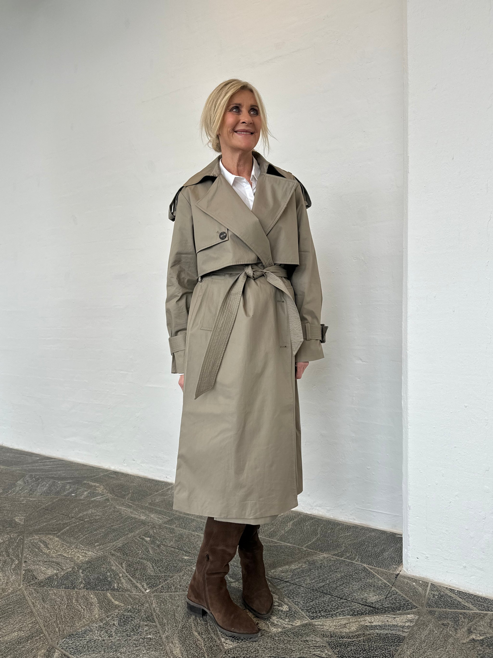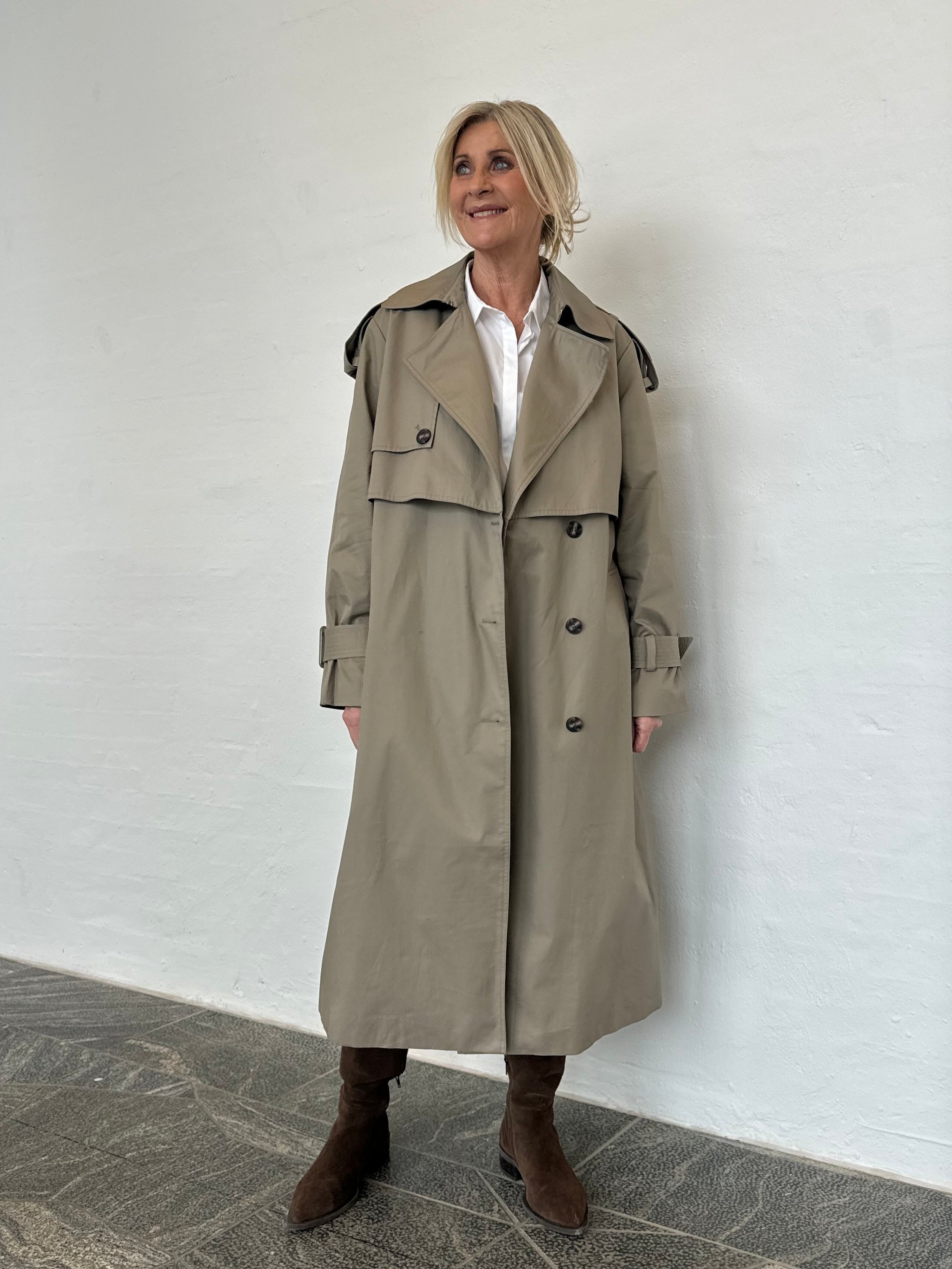 Fed trenchcoat fra WitBlack. Med de klassiske detaljer på skuldre og ærmer har jakken bare alt det lækre, vi forventer af en trenchcoat. Brug bindebåndet til at sætte fokus på taljen. Den perfekte jakke til foråret.