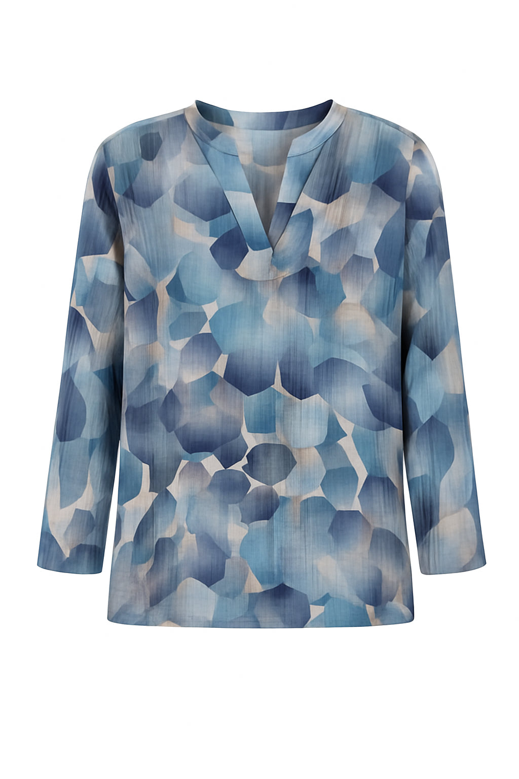 Skøn bluse fra 2-Biz i et elegant blåt mønster. Blusen har fine detaljer med plissé look, der fremhæver det feminine udtryk.