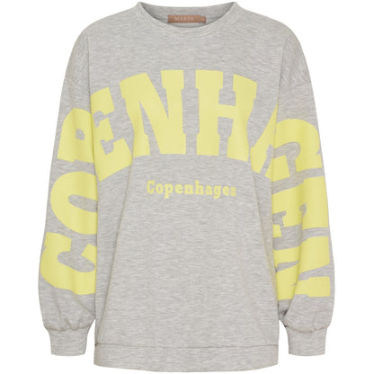 Den populære Copenhagen sweatshirt fra Marta du Château er kommet i en frisk, ny forårsfarve. Kombinationen af den lækre gråmelange og den gule skrift giver et lyst og lækkert look. Style til dine jeans og sæt et par fede støvler eller sneakers til.