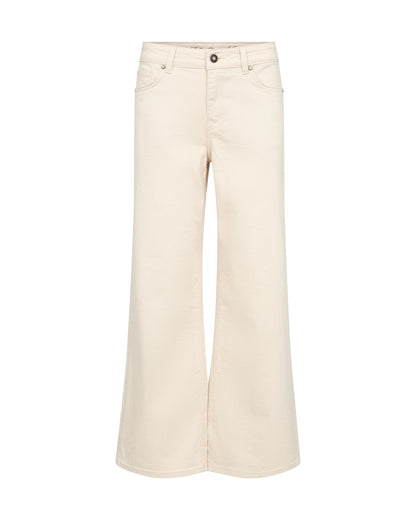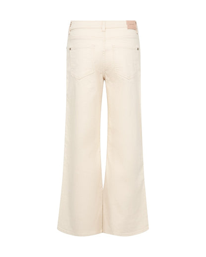 Skønne bukser fra Mos Mosh i en lys, beige farve. Bukserne har en god vidde i benene og stopper ved anklerne. Det giver en virkelig flot effekt. Der er lommer i siderne og klassiske baglommer.