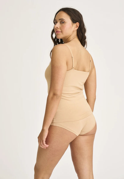 Enkel og lækker strop top fra JBS med indlagt støtte til barmen. Det ekstra lag er afsluttet med en elastik under barmen, som lige giver det ekstra hold, der kan være rart i hverdagen, så du slipper for at have en bh under din top.