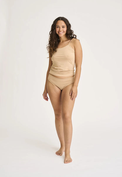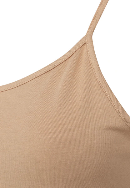 Blød og lækker strop-top fra JBS i klassisk nude. Toppen har smalle, justerbare stropper og rund udskæring. Perfekt til at sove i, eller til at style lag-på-lag med en t-shirt eller, hvad der føles godt for dig.