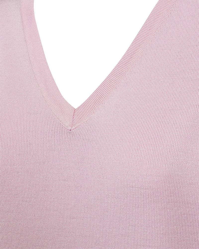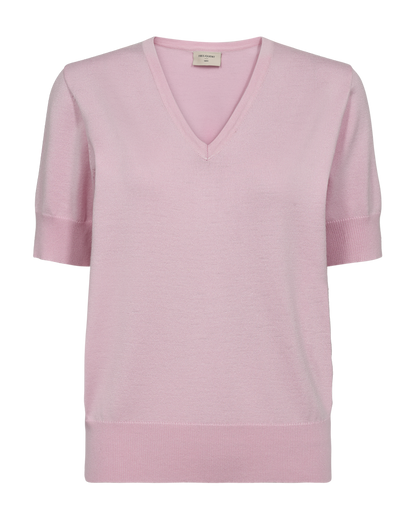 Rosa bluse fra Freequent i en lækker viskoseblanding. Blusen har korte ærmer og fin v-udskæring. Alle kanter er afsluttet med rib. Style til jeans eller til lyse bukser i sand og off white, hvis du gerne vil fremhæve den rosa farve.