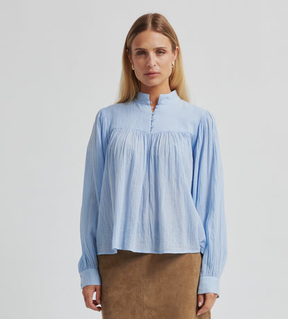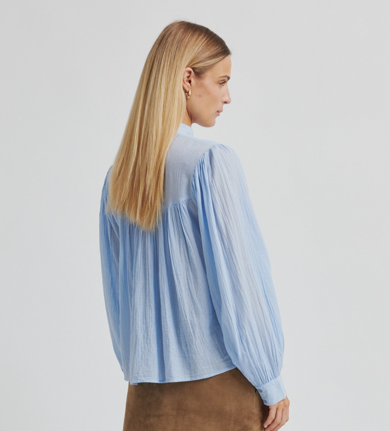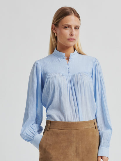 Flot lyseblå bluse.