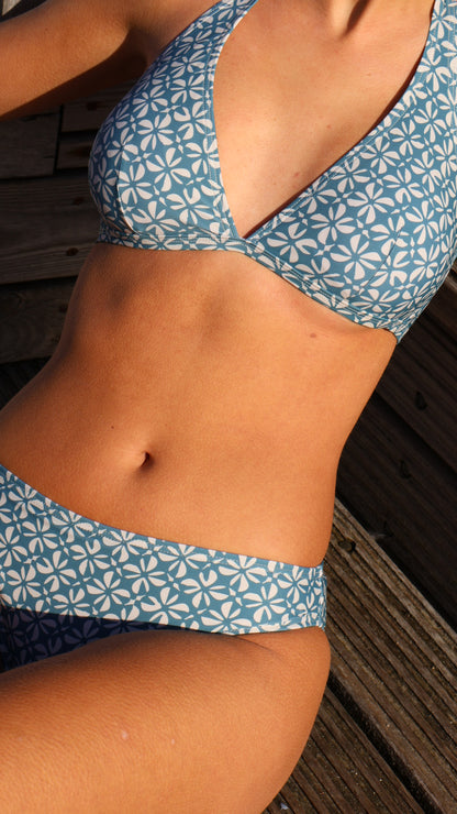 Denne bikinioverdel fra Missya kombinerer et klassisk mønster med en funktionel pasform, der er ideel til både strandturen og afslapning ved poolen. Materialet består af en slidstærk blanding af polyamid og elastan, som sikrer, at overdelen holder formen og tørrer hurtigt efter en tur i vandet. For et fuldendt look til ferien kan denne bikinioverdel med fordel sammensættes med de matchende Chris Stone Blue bikinitrusser.