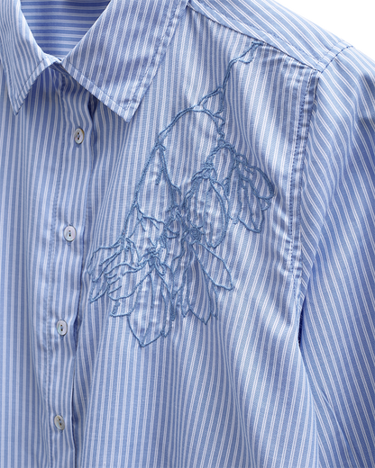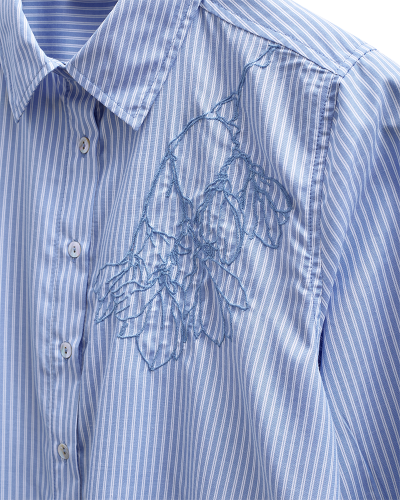 Kombiner skjorten med et par lyse hør bukser for at skabe et let og luftigt look til de varme dage. Du kan også bruge den sammen med en tætsiddende nederdel, hvis du vil have et mere sammensat udtryk til en hyggelig middag. Blandingen af bomuld og polyamid sørger for, at skjorten holder sin form, uanset om du bærer den løsthængende eller nede i dine underdele.