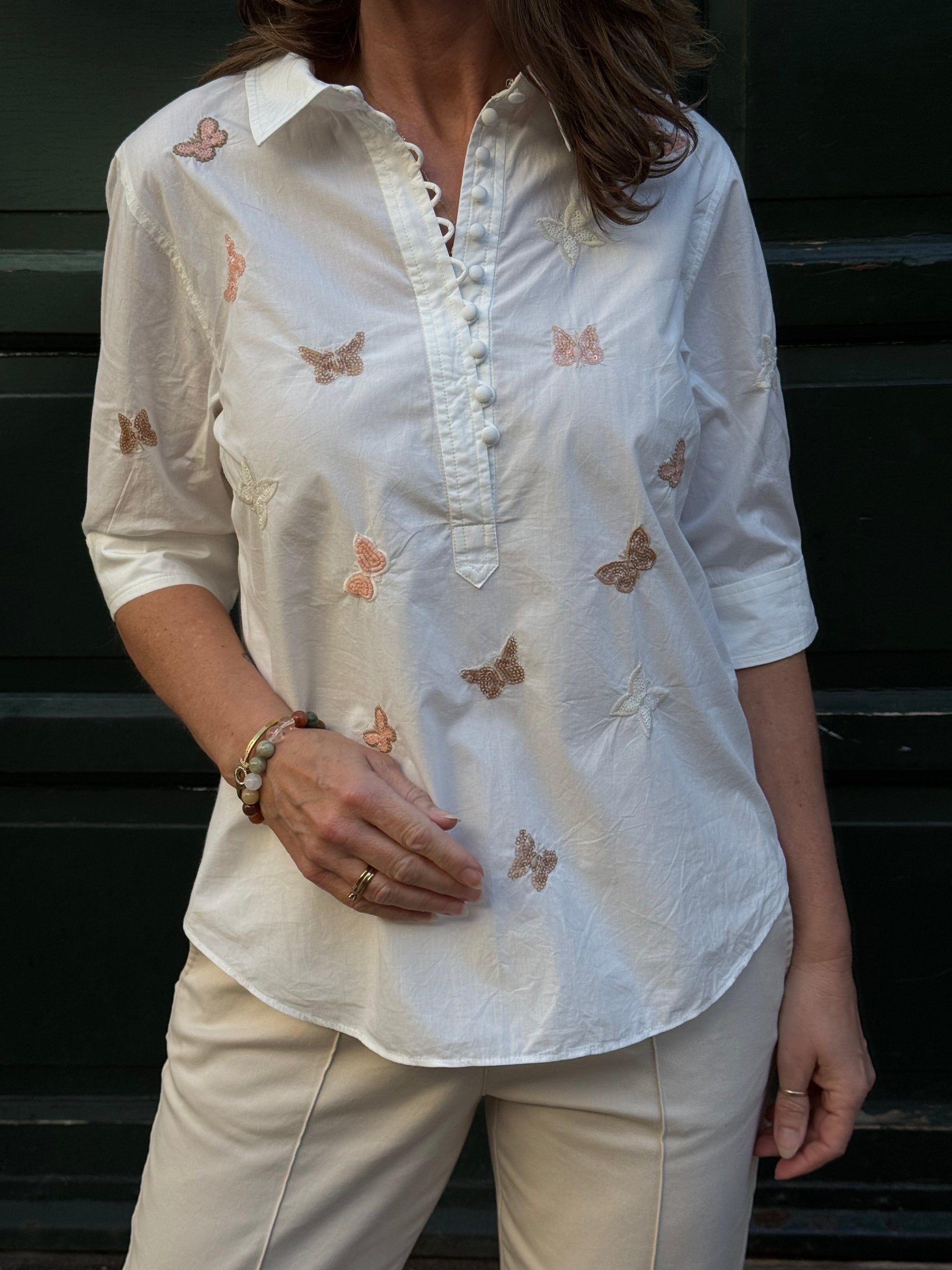 Her har du Bailey blusen fra Gustav, som er lavet i 100% bomuld. Den kommer i en flot off white farve, der gør den nem at bruge til det meste i din garderobe. Bomuldsmaterialet giver blusen en naturlig overflade, som passer perfekt til de varme dage eller som et let lag under en jakke.