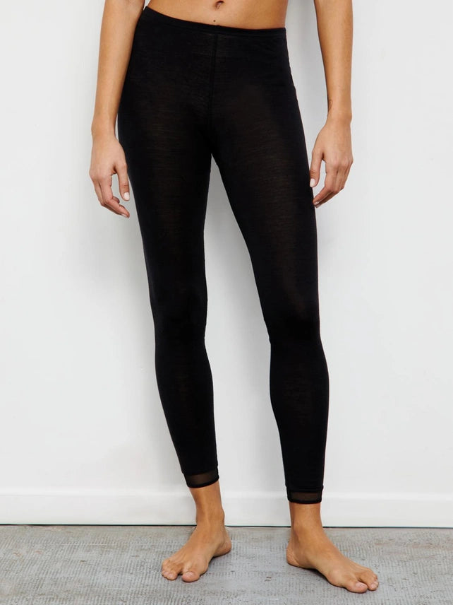 De lækre uldleggings fra Femilet er din redning på skituren. De varme leggings er lavet i blød merinould med fine meshkanter ved benene. De er helt finstrikket, så du kan have dem på under dine bukser på de kolde dage. Du kan også bruge dem som skiundertøj. Så styler du bare med den langærmede uldundertrøje for et helt sæt. De sorte uldleggings er en del af Femilets uldundertøjsserie Juliana, som tæller meget lækkert uldundertøj. De fine leggings er lavet i: 100% Merino Uld.